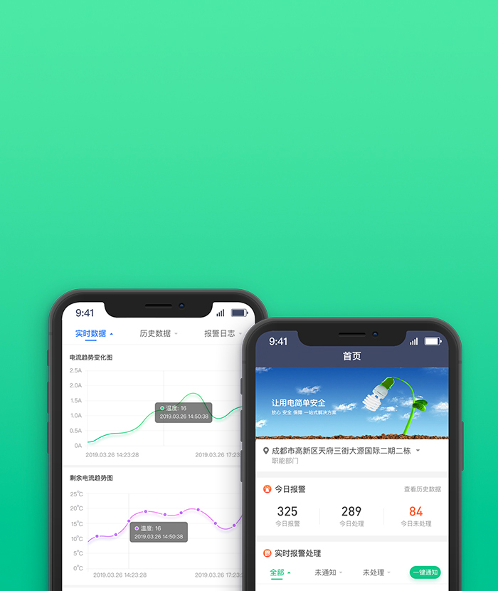 通过前端物联网设备对建筑物内的电气线路进行24小时实时监测,实现对电气火灾隐患的智慧化管理:将引起电气火灾的主要因素(线缆温度、电流、剩余电流、故障电弧)进行实时在线监测,并进行大数据分析,实现安全管理的数据化。